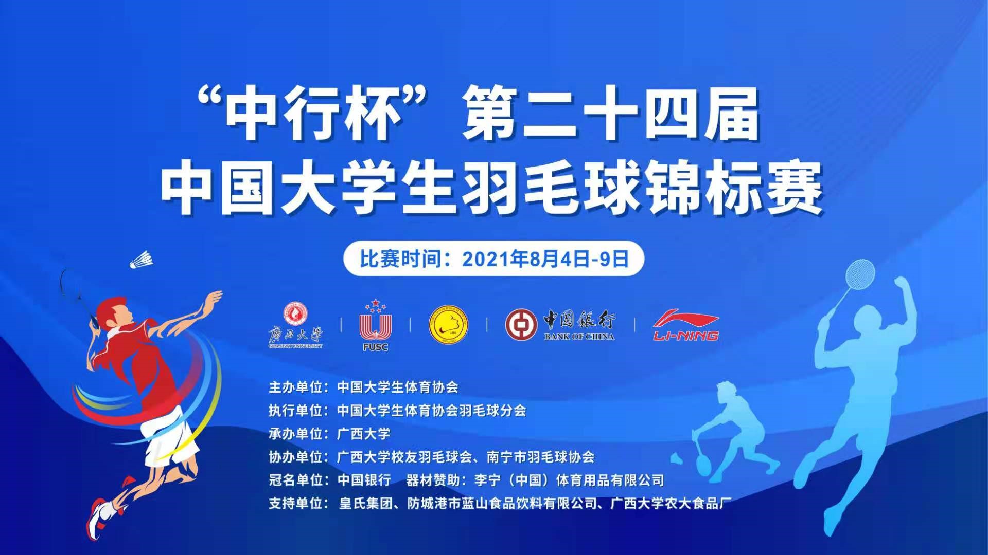 “中国银行杯”第二十四届中国大学生羽毛球锦标赛将于8月4日在beats365(中国区)-唯一官方网站正式开赛,本次赛事由中国银行广西区分行冠名赞助。