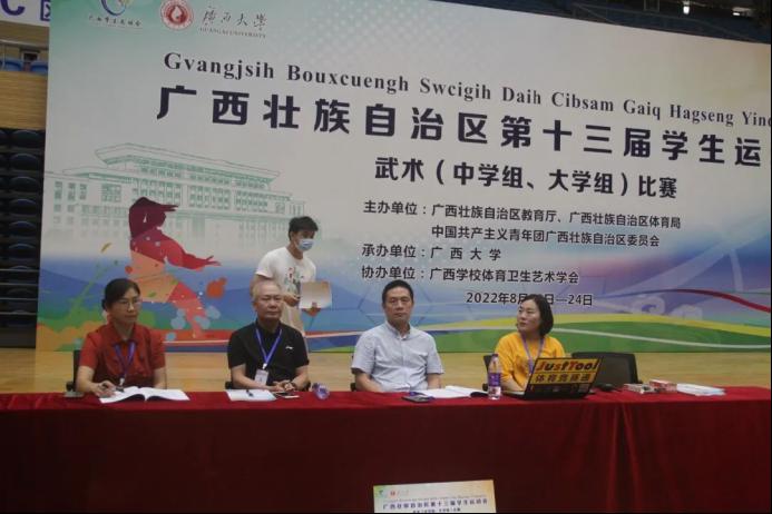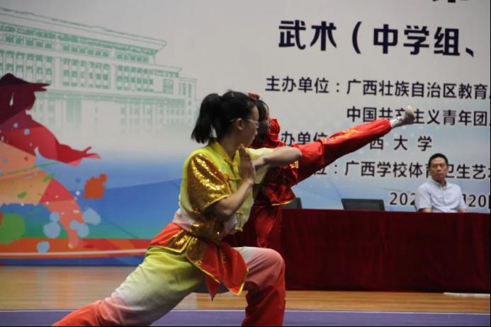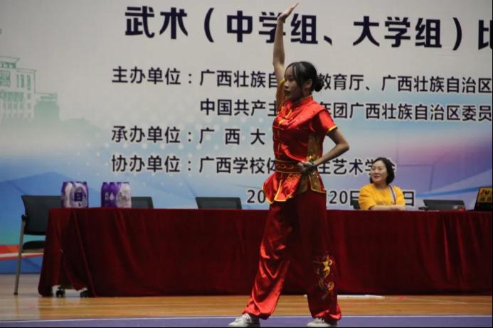 广西第十三届学生运动会武术(大学组、中学组)比赛正在进行时