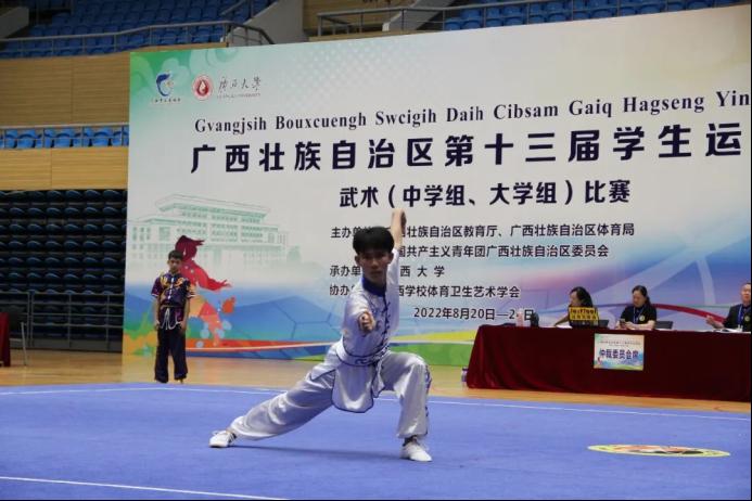 8月22日,由我校承办的广西壮族自治区第十三届学生运动会武术(大学组、中学组)比赛正式开赛,来自广西全区的运动健儿们将进行为期三天的比拼角逐。