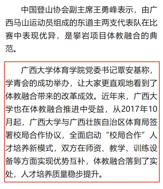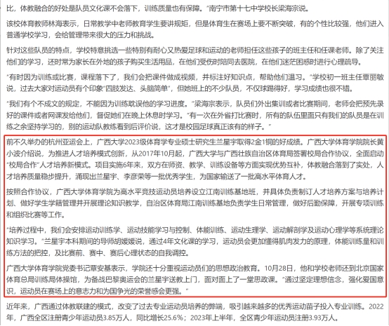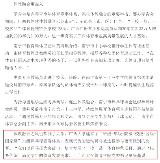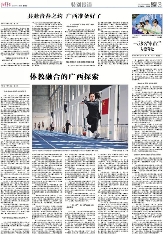 11月3日,《中国青年报》在当日第3版显著位置刊登了谢洋的署名文章《体教融合的广西探索》,集中报道了我院体教融合发展的详细情况。