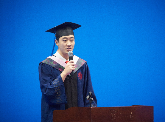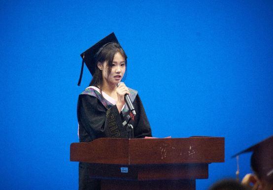 本科生代表韩芊芊和研究生代表刘宇分别上台发言,一起回顾了自己的西大生活,向母校、老师表达了最真挚的感谢,并表示无论走到哪里,都会将母校“勤恳朴诚,厚学致新”的精神和优良传统发扬光大,为实现自己的人生目标而努力奋斗。