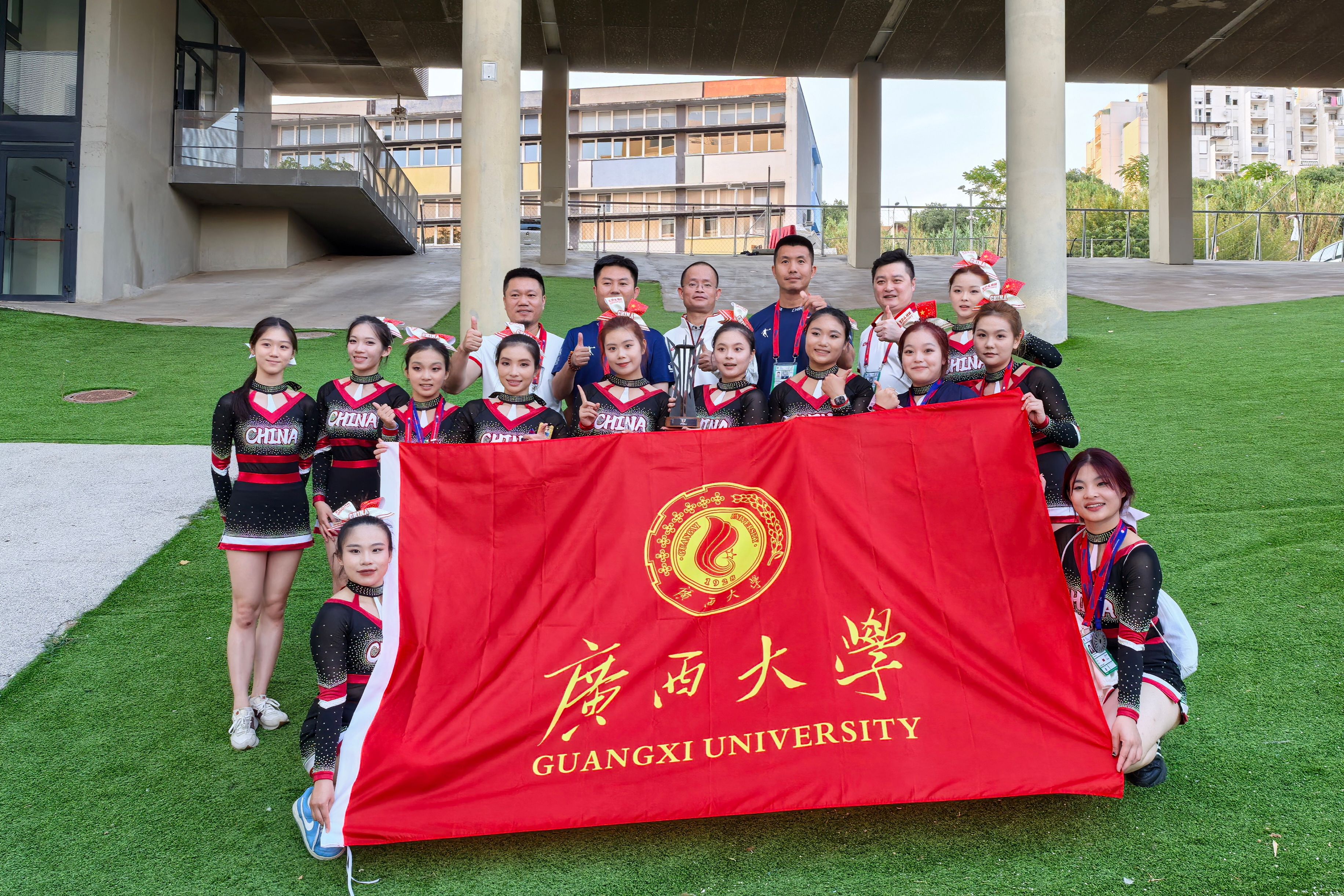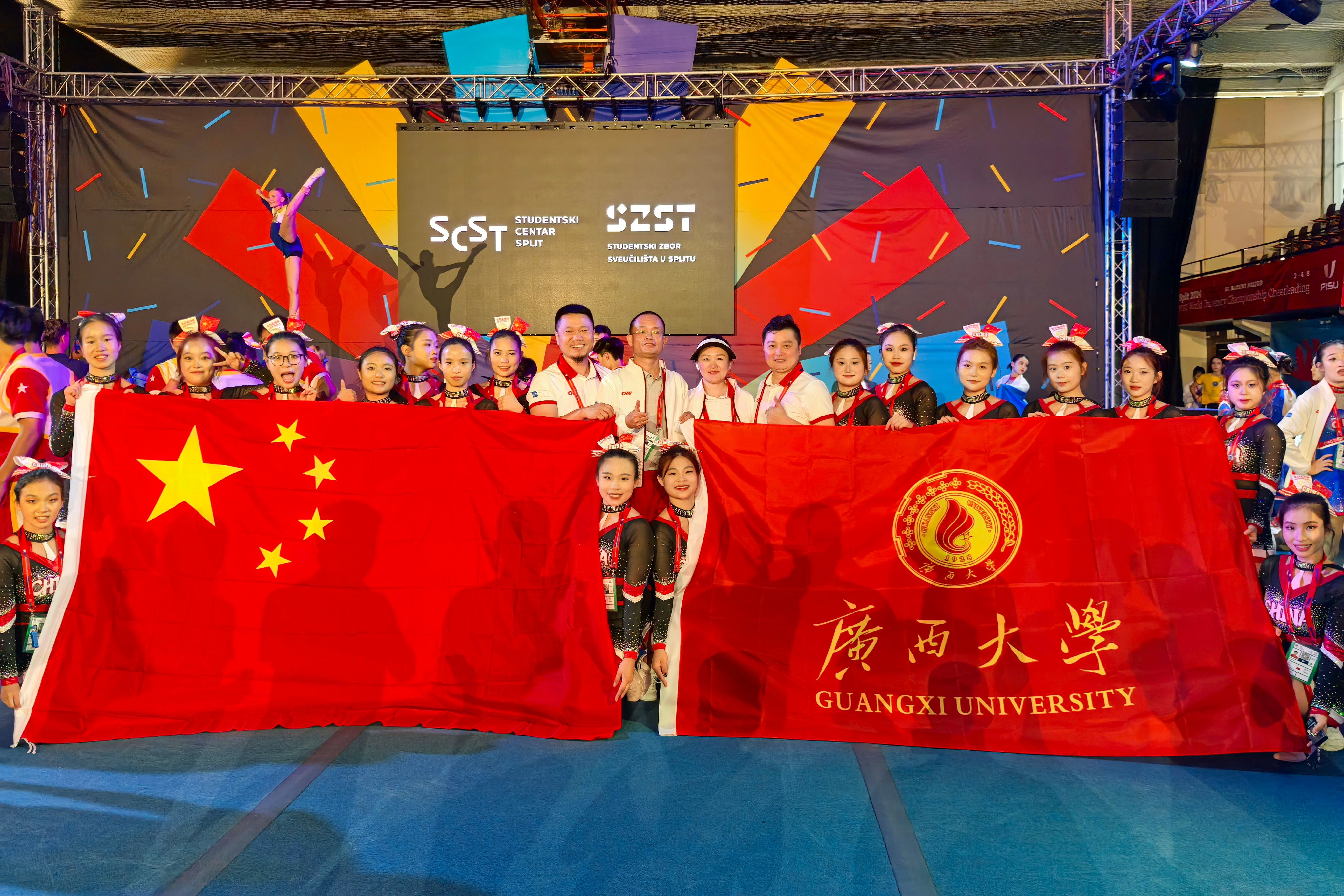 8月1日至4日,由国际大学生联合会(FISH)和国家大学生联合会(NUSF)联合主办、国际啦啦操联合会(ICU)提供技术支持的2024年FISU世界大学生啦啦操锦标赛在克罗地亚斯普利特市举行,来自中国、美国、加拿大、日本、澳大利亚等国家和地区的31支队伍参加了角逐,我校啦啦操队在领队覃安基、教练江涛的带领下顽强拼搏,夺得技巧啦啦操全女子精英组亚军,沿袭了我校啦啦操队在这个赛事上连续夺得奖牌的历史。
