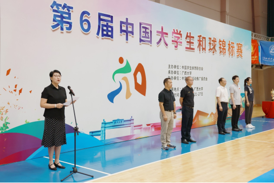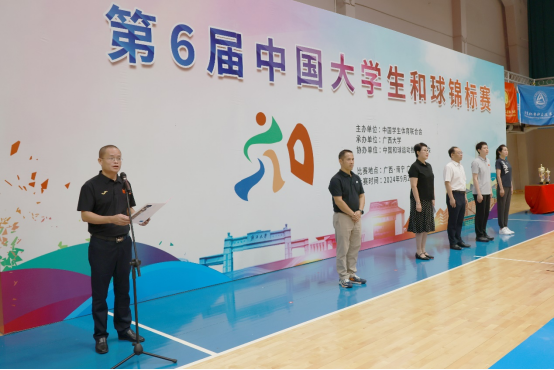 9月21日上午9时整,第六届中国大学生和球锦标赛开幕式在我院篮球馆隆重举行,校党委常委、副校长于文进出席仪式并宣布锦标赛开幕,院党委书记覃安基,中国学生体育联合会监事、浙江省学校体育协会常务副秘书长姜丽分别致辞,中国和球运动推广委员会副主席兼秘书长滕翀出席开幕式。
