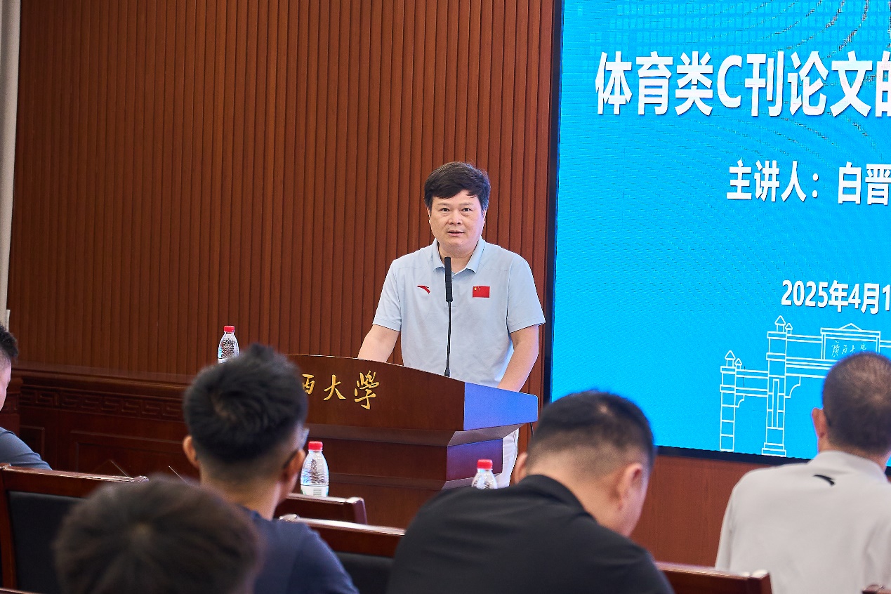 4月15日,应我院邀请,国内体育学界知名学者,湖南吉首大学原党委书记、校长白晋湘教授做客beats365(中国区)-唯一官方网站君武大讲堂,为我院师生做题为《体育类C刊论文的构思与写作》专题讲座,受到师生的欢迎。